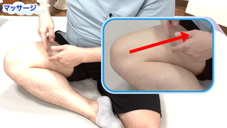 ② 太ももの内側をほぐす(膝痛の人が特に硬い)
